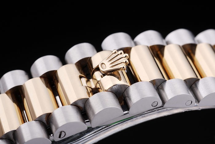 Bracelet en acier inoxydable: acier inoxydable brossé et or jaune bracelet lien avec Rolex logo caché clasp