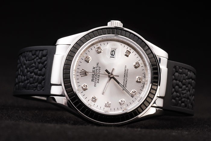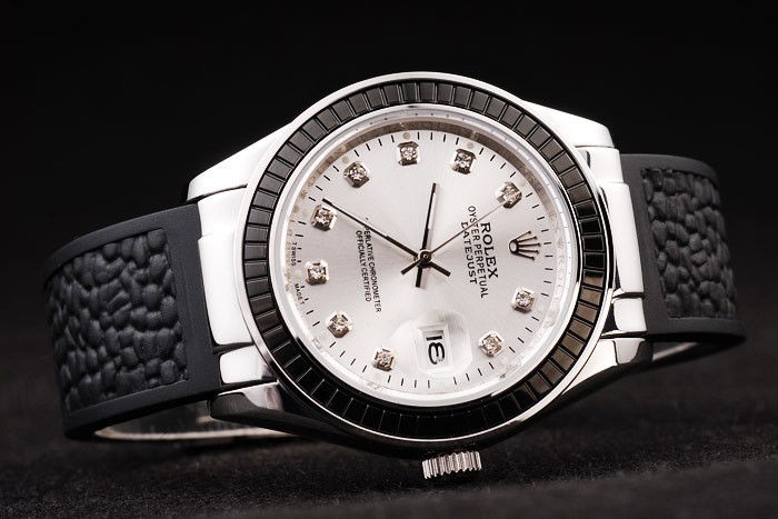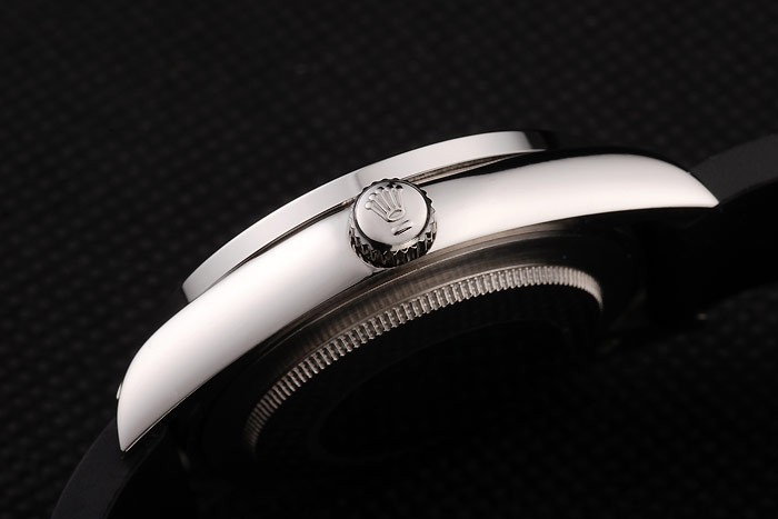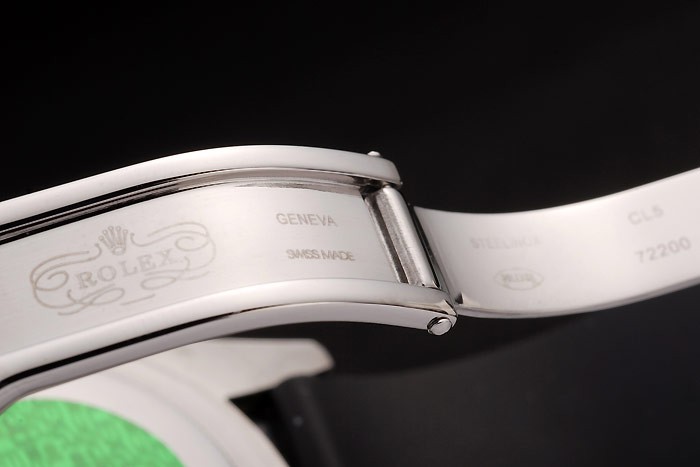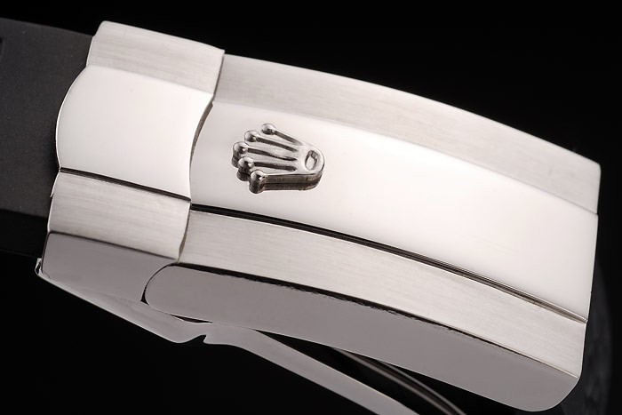 Bracelet en acier inoxydable: Con u bracelet en caoutchouc noir avec Rolex gravé pli en boucle avec Rolex logo gravé sur top
