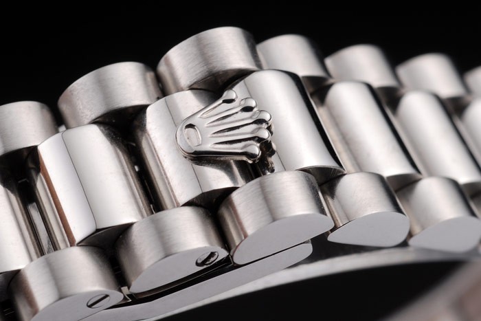 Bracelet en acier inoxydable: brossé et poli lien en acier inoxydable bracelet avec Rolex gravé fermoir caché affichant la longueur Rolex logo