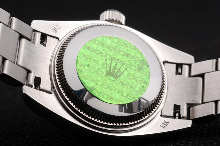 Retour: Acier inoxydable de cas de poussée en arrière avec vert Rolex logo stamp