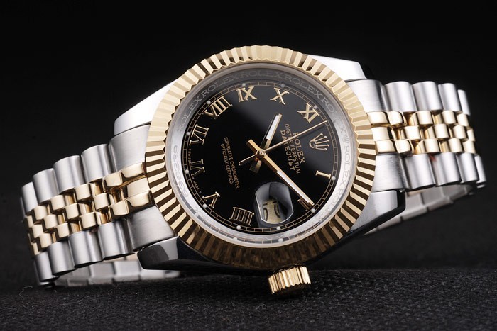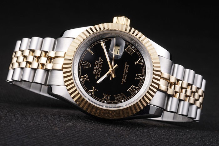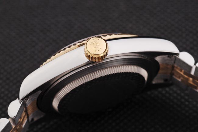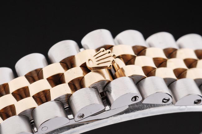 Color japonais: acier inoxydable brossé et jaune cha ne à maillons or avec Boucle déployante et Rolex couronne engraving