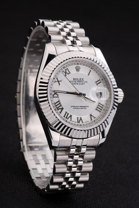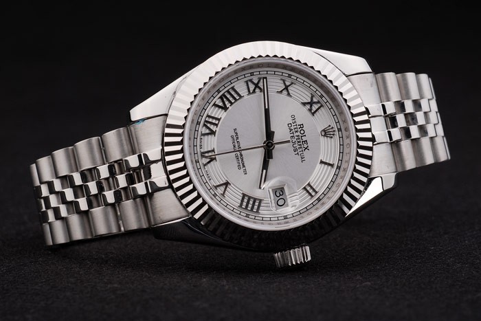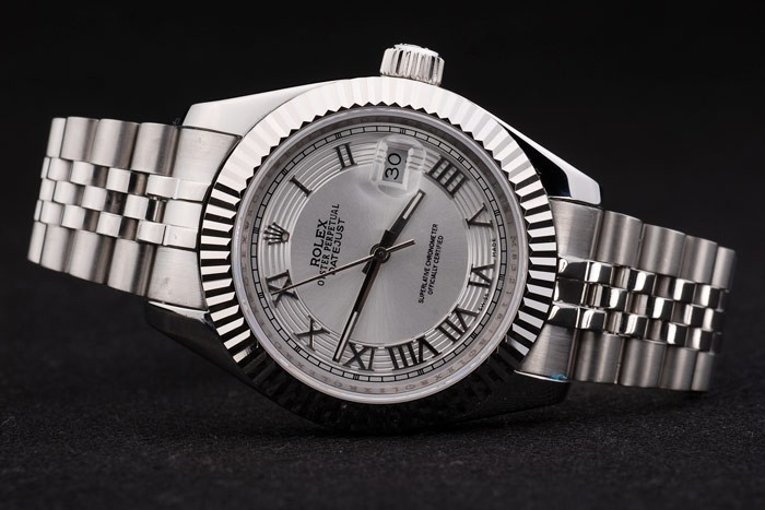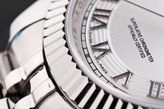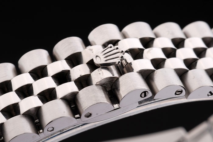 Bracelet: brossé et poli inoxydable cha ne à maillons en acier Boucle déployante et Rolex couronne engraving