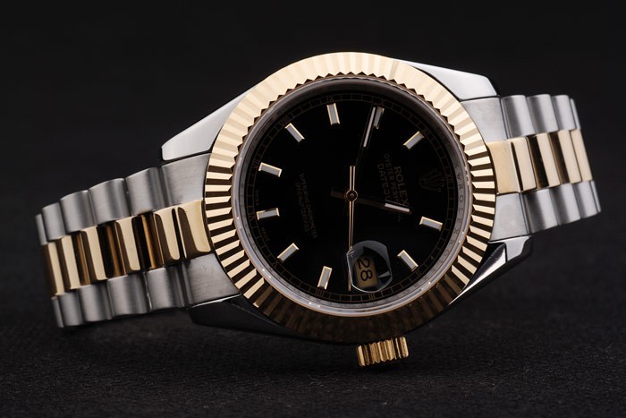 Color japonais: acier inoxydable brossé et jaune cha ne à maillons or avec Boucle déployante et Rolex couronne engraving