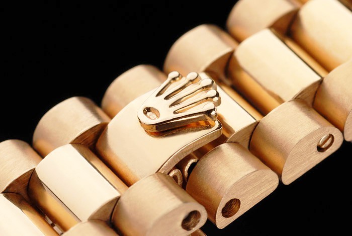 Bracelet en acier plaqué or jaune 18k inoxydable bracelet à maillons en acier avec Rolex Gravure fermoir caché affichant la longueur Rolex logo