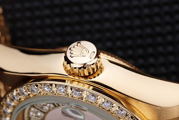 Retour: plaqué or jaune 18k inoxydable cas de poussée en arrière en acier avec le vert Rolex logo stamp