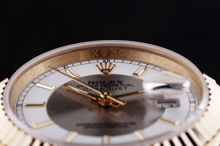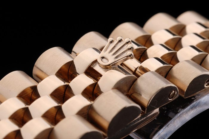 Watch fermoir: couronne plaqué or jaune 18k cutwork en acier avec Rolex logo