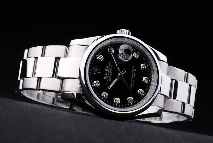 Bracelet: brossé et poli bracelet en acier inoxydable avec gravure Rolex pliez en boucle déployante affichant la longueur Rolex logo