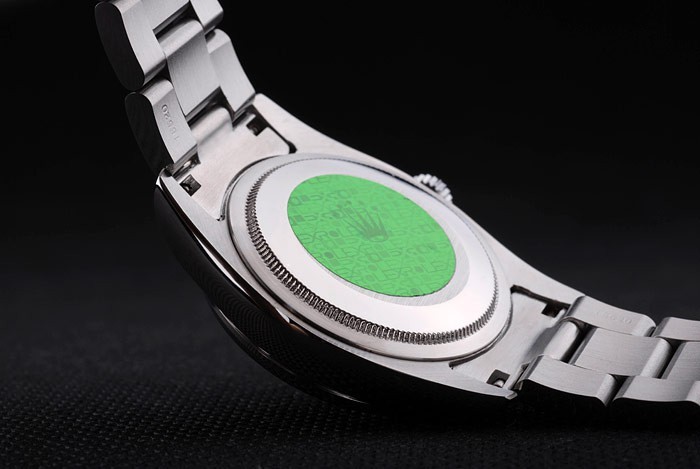 Retour: Acier inoxydable de cas de poussée en arrière avec vert Rolex logo stamp