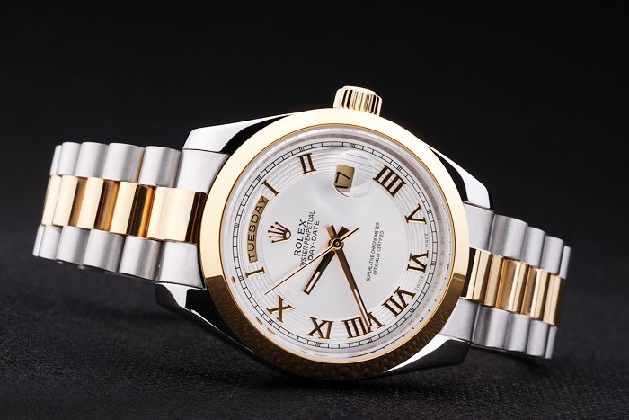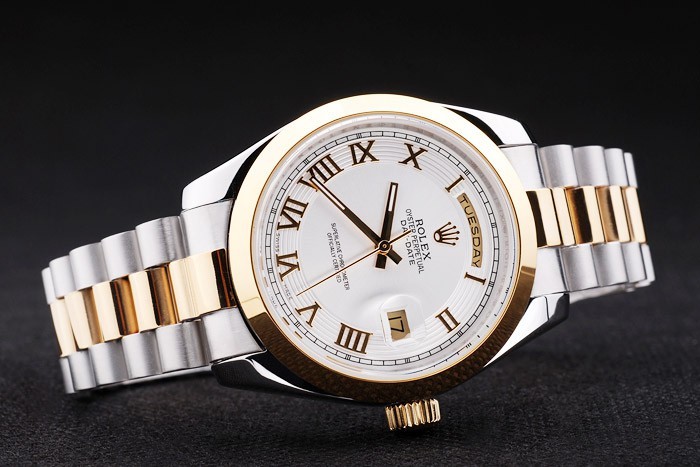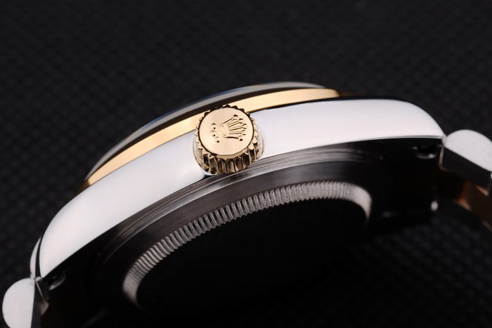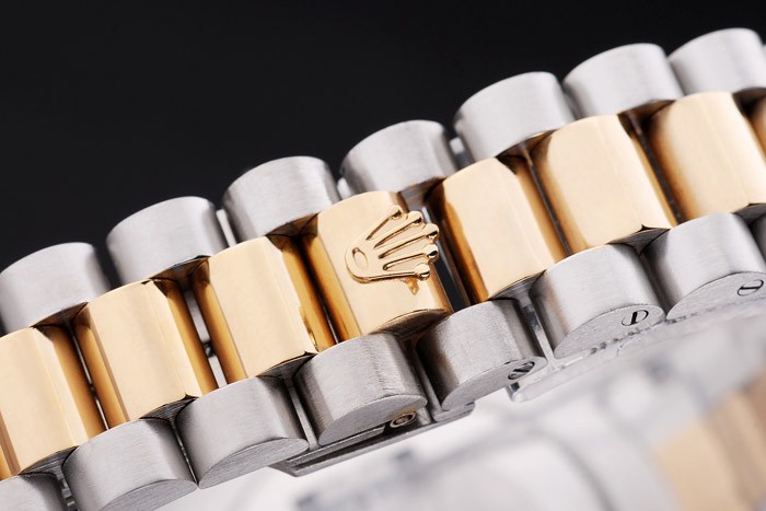 Color japonais: acier inoxydable brossé et jaune cha ne à maillons or avec Boucle déployante et Rolex couronne engraving