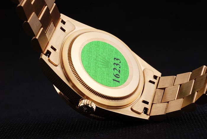 Retour: plaqué or jaune 18k inoxydable cas de poussée en arrière en acier avec le vert Rolex logo stamp