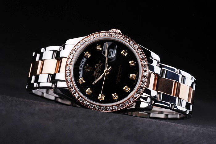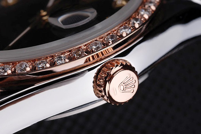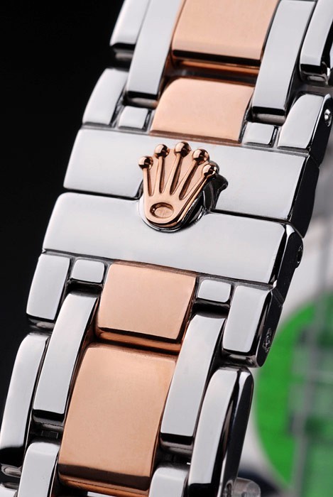 Crown: 18k or rose plaqué couronne cutwork en acier avec Rolex logo