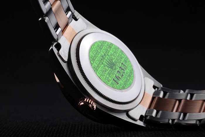 Retour: Acier inoxydable de cas de poussée en arrière avec vert Rolex logo stamp