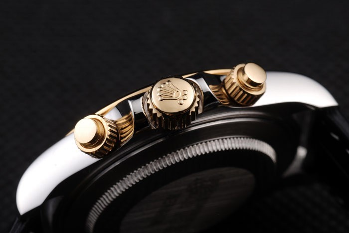 Crown: couronne jaune cutwork or 18k avec Rolex logo et plus petites couronnes de chaque côté de it