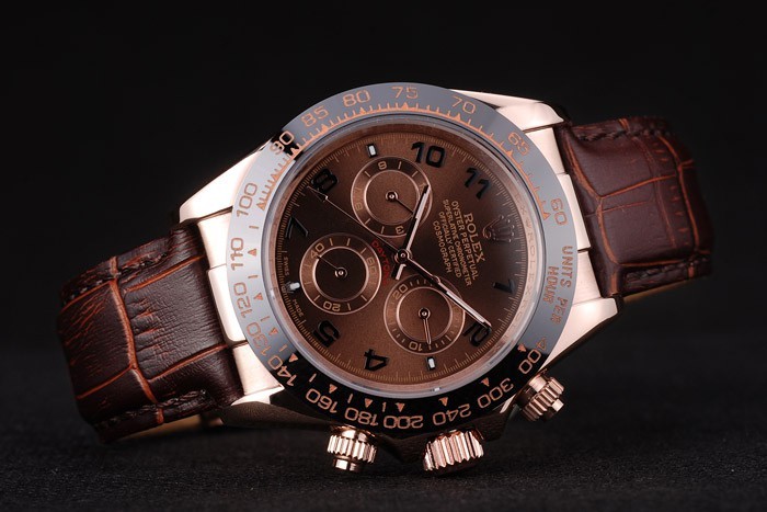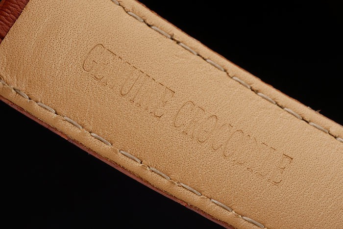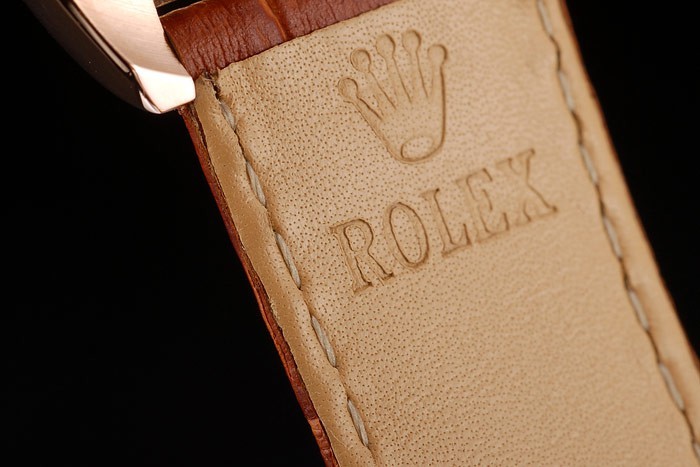Bracelet: relief crocodile bracelet en cuir brun de chaleur Rolex gravée en or rose boucle déployante avec Rolex logo sur top