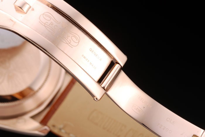 Crown: 18k or rose couronne cutwork avec Rolex logo et deux petits cutWork bouton-poussoir couronnes de part et d’autre de it