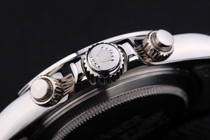 Crown: couronne cutwork en acier inoxydable poli avec Rolex logo et deux couronnes supplémentaires de chaque côté de it