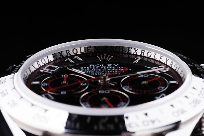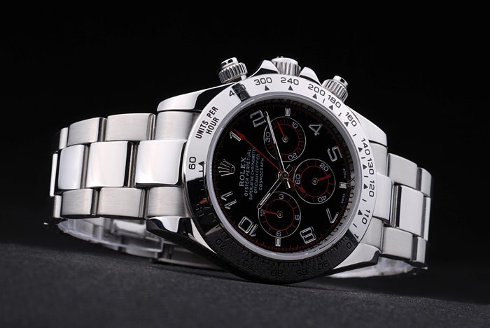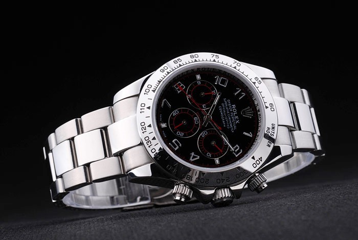 Montre « Daytona-RL68 » de Rolex. Elle possède un boîtier en acier inoxydable, un mouvement cinétique japonais de haute qualité et une lunette polie en acier inoxydable. Le bracelet en acier inoxydable est brossé et poli, avec une boucle déployante affichant le logo Rolex. La montre mesure 48 x 40 mm, avec une épaisseur de 13 mm.