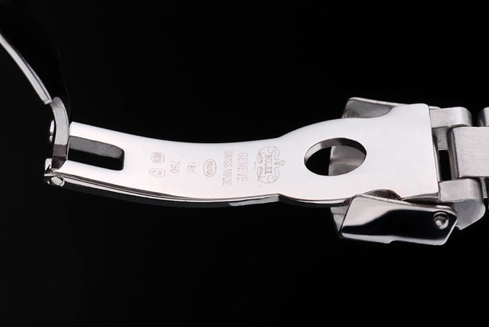 Crown: couronne cutwork en acier inoxydable poli avec Rolex logo et deux couronnes supplémentaires de chaque côté de it