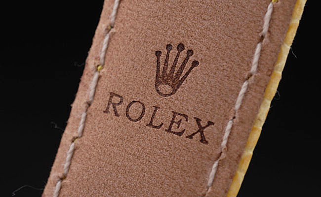 Bracelet en acier: jaune bracelet en cuir de serpent avec Rolex et le logo Gravure et acier inoxydable boucle déployante en acier affichage Rolex logo