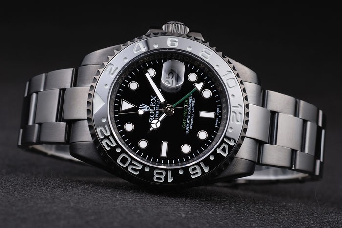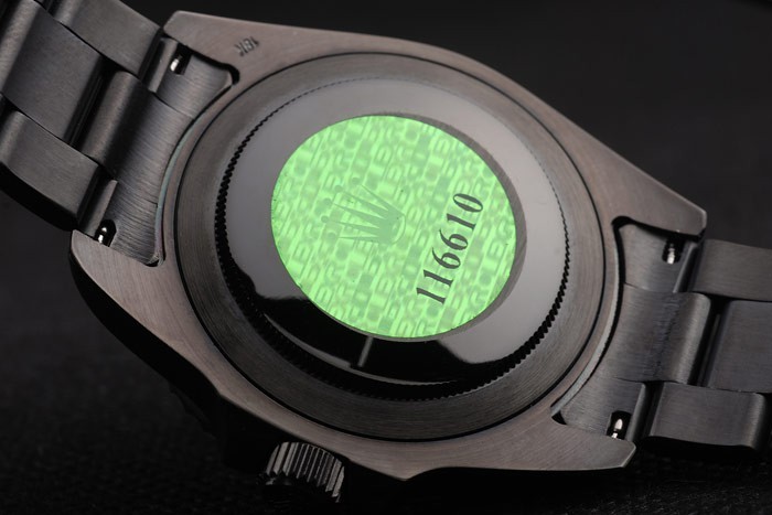 Retour: Ion-plaqué inoxydable cas de poussée en arrière en acier avec le vert Rolex logo stamp