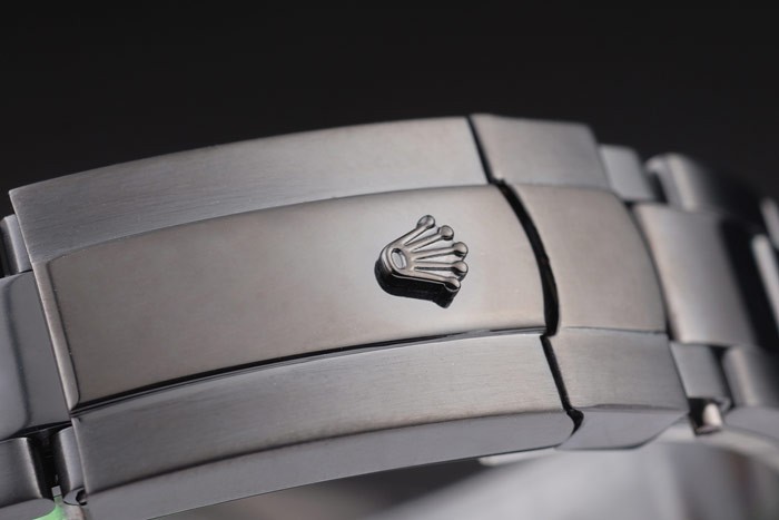 Bracelet en acier inoxydable: Ion plaqué lien bracelet en acier inoxydable avec Rolex gravée dépliante dans le déploiement fermoir affichant la longueur Rolex logo