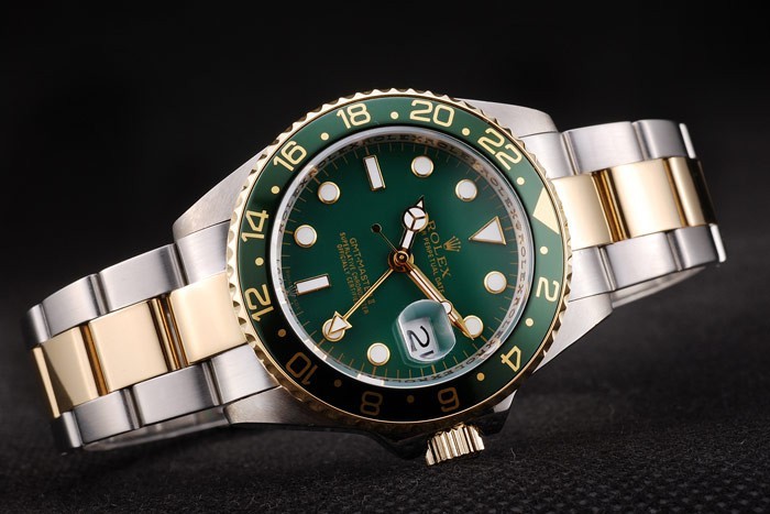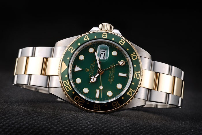 Bezel: vert céramique lunette cutwork avec un indice d’or et chiffre arabe minute markers