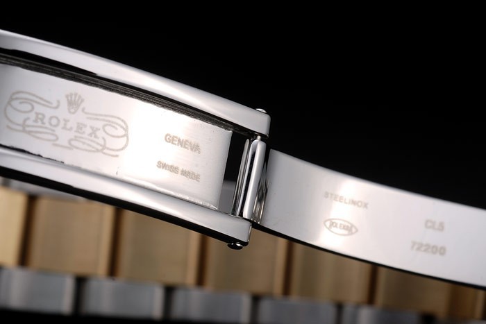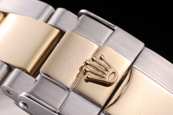 Bracelet en acier inoxydable plaqué or jaune et acier inoxydable brossé lien en acier bracelet avec gravé boucle déployante avec logo Rolex sur top