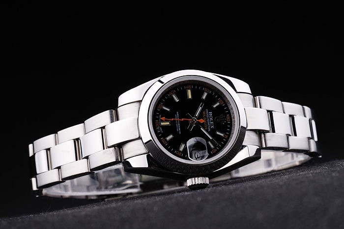 Bracelet en acier inoxydable: brossé et poli lien bracelet en acier inoxydable avec gravure Rolex plier en boucle affichant la longueur Rolex logo