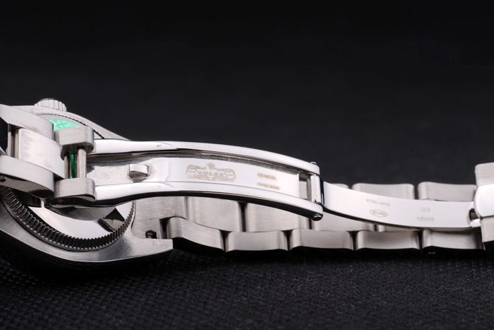 Retour: Acier inoxydable push-en affaire avec le vert Rolex Gravure stamp