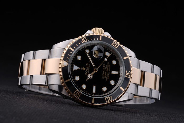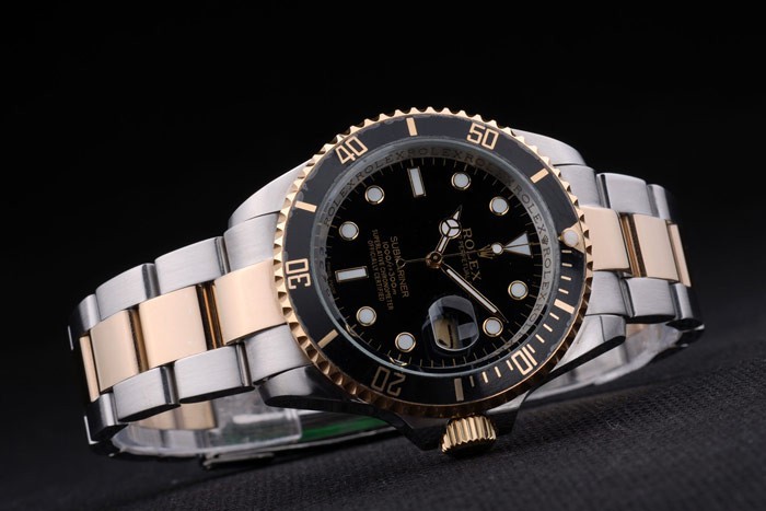 Bezel: gold-tone cutwork lunette avec émaillé noir minutes lumineux marqué type top