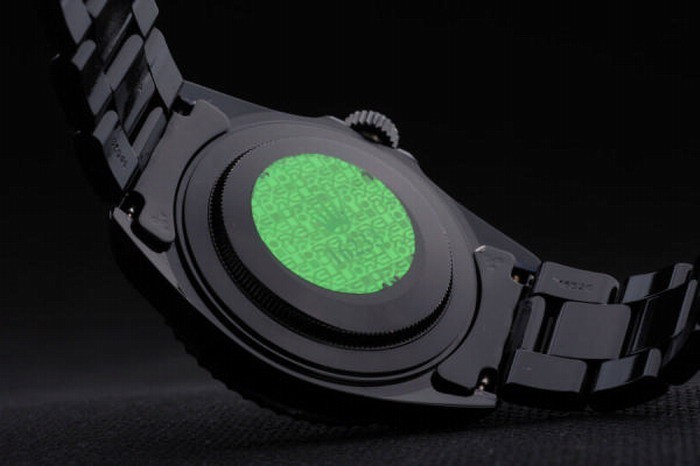 Retour: Ion-plaqué inoxydable cas de poussée en arrière en acier avec le vert Rolex logo stamp