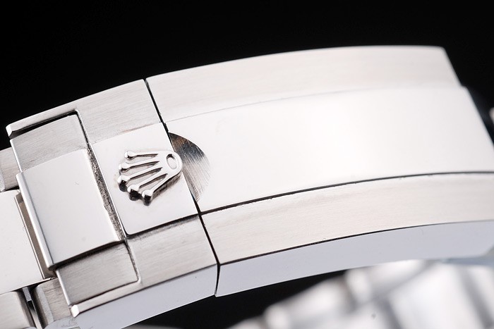 Bracelet en acier inoxydable: acier inoxydable brossé bracelet lien avec gravure Rolex plier en boucle affichant la longueur Rolex logo