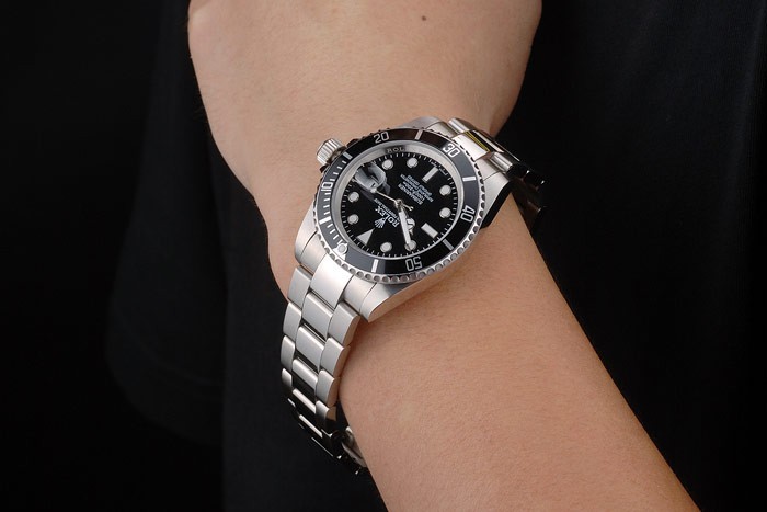 Retour: Acier inoxydable push-en affaire avec le vert Rolex Gravure stamp
