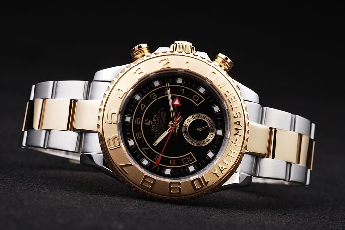 Bezel: plaqué or rose unidirectionnel cutwork lunette avec 1 à 10 marques et Yacht Gravure master sur un bleu de type émaillé background