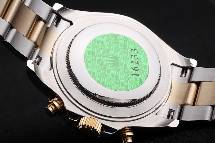Retour: Acier inoxydable poli push-dans le dos avec le vert Rolex logo stamp