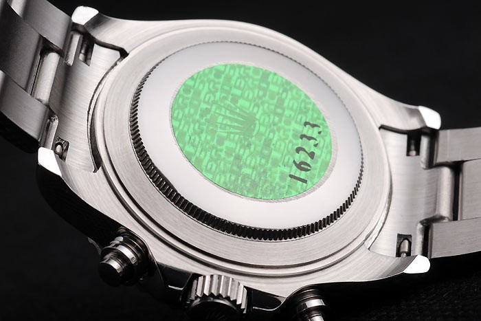Retour: Acier inoxydable poli push-dans le dos avec le vert Rolex logo stamp