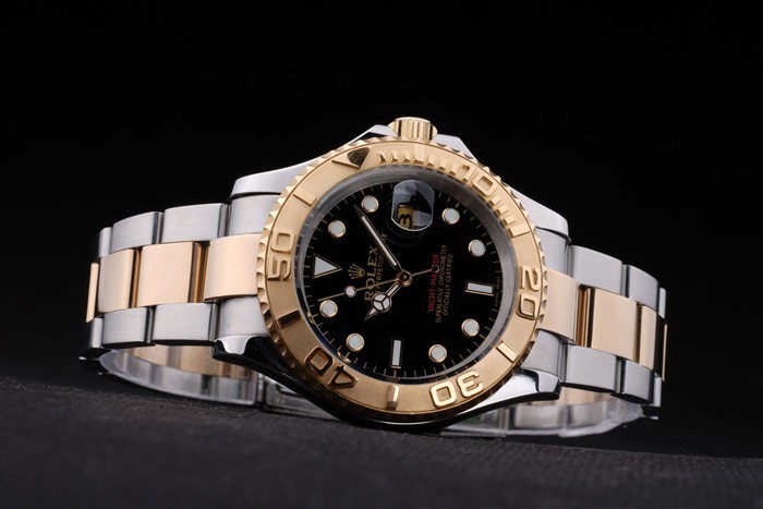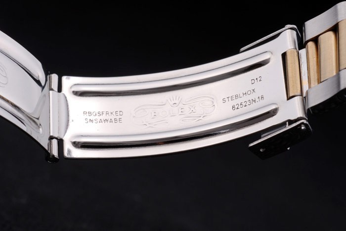 Bracelet en acier: Deux tons bracelet lien brossé et acier inoxydable de ton or avec gravure Rolex plier en boucle affichant la Rolex logo
