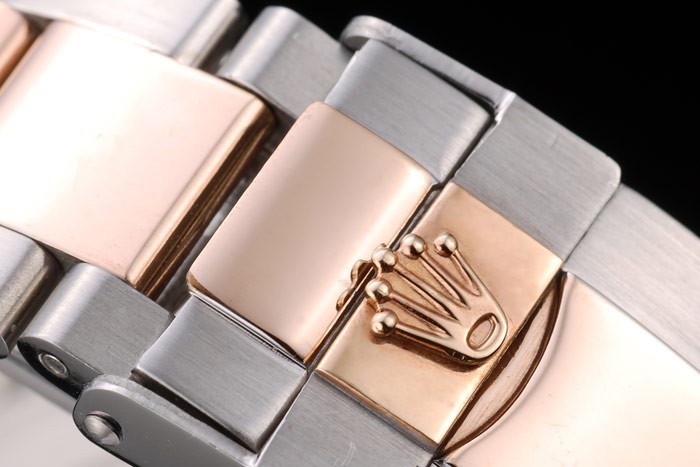 Crown: 18k or rose couronne cutwork avec Rolex logo et deux petits cutwork poussoirs bouton couronnes de chaque côté de it